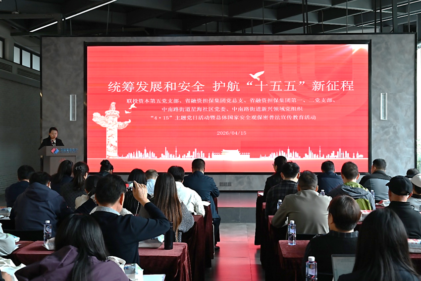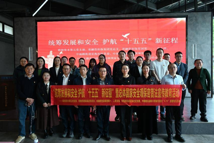 湖北日报客户端讯(通讯员田苑、许妮亚)4月15日下午,武昌区中南路街道等多家单位在华中小龟山金融文化公园联合举办“统筹发展和安全 护航‘十五五’新征程”主题党日活动暨总体国家安全观保密普法宣传教育活动。本次活动由联投资本第五党支部、省融资担保集团各党支部、中南路街道星海社区党委、中南路街道新兴领域党组织联合开展。武昌区国家保密局、武昌区妇联、湖北予智律师事务所、北京大成(武汉)律师事务所等单位共50余人参加。