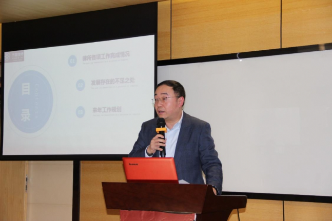 聂闫华律师从党支部基本情况、日常工作和工作难点三个方面进行了支部年度工作总结。